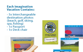 Placed by your computer at work, school or home; IMAGINATION VACATION is an affordable vacation experience that will serve as a constant reminder to of your favorite pastimes.